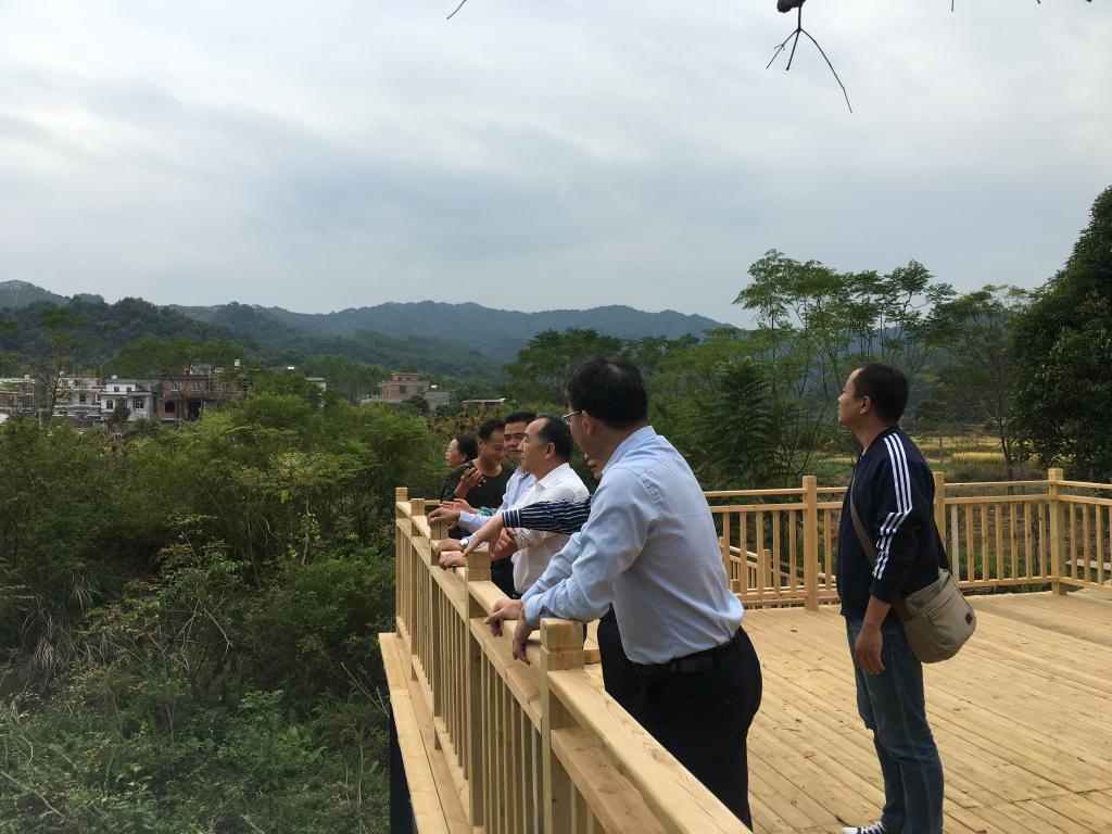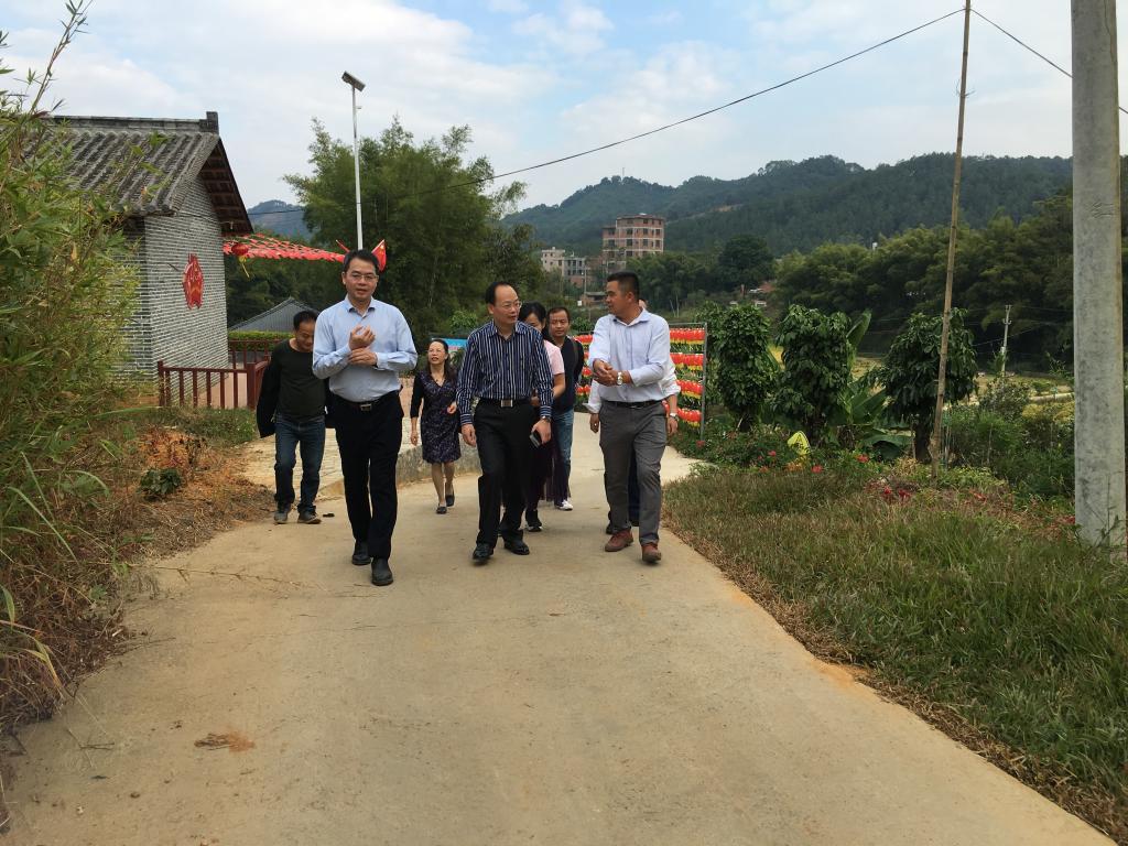 习近平总书记多次指出,要发挥高等教育在实现中华民族伟大复兴中国梦的征途上的重要引领作用。我区梧州学院作为梧州市高等院校,为发挥地方大学服务地方经济的作用,学校纪委书记梁业华带领宝石与艺术设计学院院长戴继明教授与视觉传达设计教研室主任黄璜、环境设计专业教师刘小平,于11月12日下午,在梧州长洲区区委常委、常务副区长陈瑞文,长洲区科技文化体育和旅游局局长梁少欢,长洲区倒水镇富万村党支部书记莫振华的陪同下,考察了倒水镇富万村的“新农村”的建设。