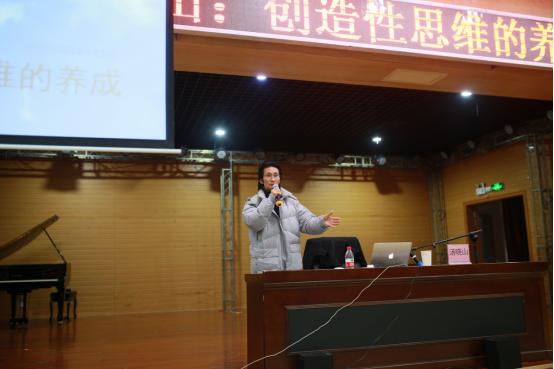 为了加强学习能力及提高思维灵活运用,锻炼发散性思维,进一步促进和提高创造性思维。我院于2018.12.30上午9时,在实验楼五楼音乐厅成功举办汤晓山教授学术交流活动-创造性思维的养成。此次活动由梧州市美术家协会主席杨杰主持,出席本次活动的嘉宾有:广西艺术学院影视与传媒学院党委书记、副院长、教授、博士生导师汤晓山,宝石与艺术设计学院院长戴继明,副院长吴海彪、贠禄,梧州市美木协会席杨杰、副主席覃丹颖以及视传达设计全体师生。
