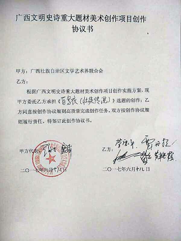 这次评审会,对47件入围作品的色彩稿进行观摩评议,作最后的审定,并与作者签订创作协议。此后,将按照色彩稿进行作品的放大制作,《百鸟衣》(中国画)完成后作品尺寸为2米×4米。标志着“项目”进入正式作品创作阶段,作品创作计划于2018年8月完成,随后,将举办“广西文明史诗重大题材美术创作作品展览”,以此向广西壮族自治区成立60周年献礼!