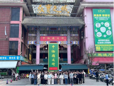 瑞丽作为全国重要的翡翠集散与加工中心,是本次考察的核心站点。师生们深入德龙国际珠宝城、样样好翡翠直播基地及多家玉雕工坊,实地了解翡翠从原料采购、切割设计、雕刻抛光到直播销售的全产业链条。在玉雕大师工作室,同学们认真观摩翡翠首饰的设计流程——因材施艺、巧色巧雕,并与一线设计师交流当代翡翠首饰的消费趋势与创新方向。多位同学表示,瑞丽之行让他们第一次真正理解了“玉不琢,不成器”的专业内涵。