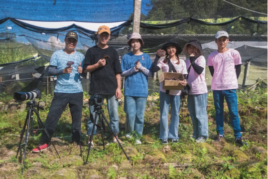 活动队员在灵芝种植大棚内进行视频素材拍摄