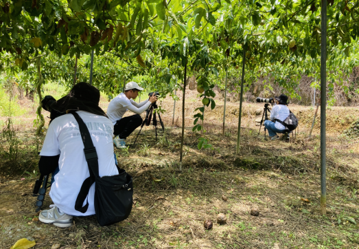 活动队员在百香果种植片区进行视频素材拍摄
