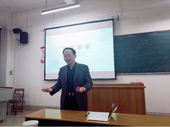 本次班会分为四个环节,第一个环节为18级数字媒体艺术2班班长马盈盈同学上台以PPT的形式讲述班级同学们在过去的2019年的进步和收获。第二个环节是给同学们5分钟时间在纸条上写下自己对2020年的祈愿,然后以点名游戏的形式抽十位同学上台分享个人2020小目标。第三个环节为学校党委书记梁业华老师跟同学们交流,梁书记首先充分肯定了同学们在2019年的成长和对2020年的祈愿。接着以三个小故事的形式给大家上了一堂生动的思政课,启发同学们遇到问题要主动想办法解决,脚踏实地完成每一项任务;鼓励同学们多发现问题,提出问题,解决问题;激励相信自己,同时同学们多与人交流,同学们都听得非常认真。第四个环节是师生互动,学生向老师提出自己面临的困惑。有位同学提出“大学生适不适合谈恋爱”,宝石与艺术设计学院副书记黄石莲老师跟同学们分享了她的观点,教育同学们在谈恋爱的同时也要注意保护自己。