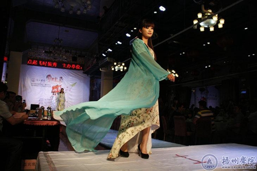 学校党委宣传部、教务处、学生工作部(处)、综合管理处、 宝石与艺术设计学院、师范学院、成人教育学院等有关部门的领导,梧州市喜宴酒楼吴雄辉董事长、袁飞执行董事长以及来自广东商家代表、梧州市服装设计中职学校代表到场观看。