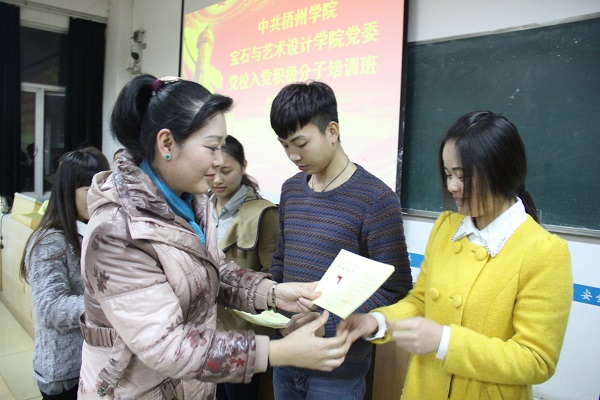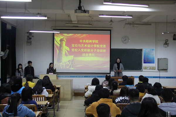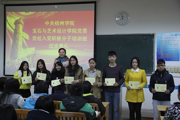 2015年1月16日晚上19:30,宝石与艺术设计学院党委党校第二期入党积极分子培训班结业典礼在综合教学大楼S201举行。