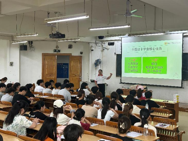 为提升学生急救技能,增强应对突发状况的能力,5月24日,宝石与艺术设计学院联合梧州市红十字会,在明理楼S303举办了心肺复苏+AED(自动体外除颤器)公益持证培训班。此次培训吸引了众多学生积极参与,现场学习氛围浓厚。