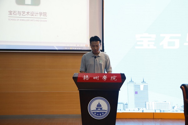 2014级视觉传达设计的黄富彦代表老生进行发言。他说道:“大学是人生中一个新的起点,新的开始。在大学这新的起点,希望学弟学妹们都能勇敢的面对新的挑战,做自己想做的事,成为自己想成为的人,努力拼搏,四年后梧院无悔。”来自2017级环境设计专业二班刚刚退伍回来的钟达能作为新生代表上台发言。他表示很高兴能和那么多的同学和老师相聚在宝石与艺术设计学院这个大家庭里。他说道:“人生只有一种成功,那便是全力以赴做自己的热爱的事情,并从中创造价值,为社会作出贡献,自立自强。感谢能够来到梧州学院,给我们实现梦想的机会,感谢遇见梧院的你们,让我们一起奋斗吧,实现自己的人生目标。”