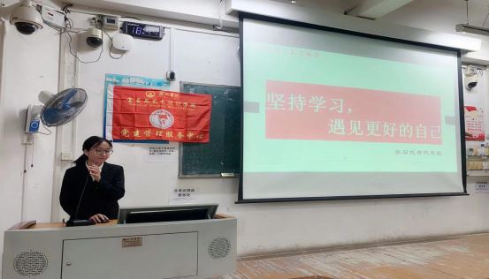 据悉,本次活动是学校“以梦为马,不负韶华”优秀学生宣讲会的一个分会场,旨在通过各个学院优秀学生的宣讲,营造向榜样学习,奋发上进的良好氛围。