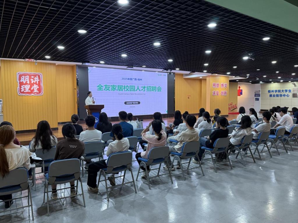 5 月 30 日上午,受宝石与艺术设计学院邀请,全友家居来到校进行宣讲。此次宣讲会在体育馆邑谷中心火热开讲,吸引众多 2025 届毕业生到场聆听。