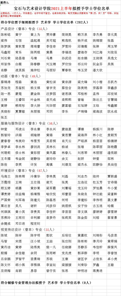 2021上半年拟授予学士学位资格认定结果公示期为2021年5月21日-26日五天,如有异议,可在公示期内以书面形式署真实姓名向宝艺党政办公室反馈。联系人:容一力07745828777