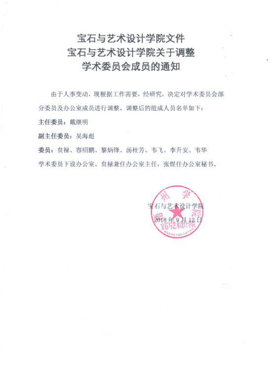 公示期三天(2018年9月13日——9月16日),如有异议请在公示期内以书面形式向宝石与艺术设计学院办公室提出。