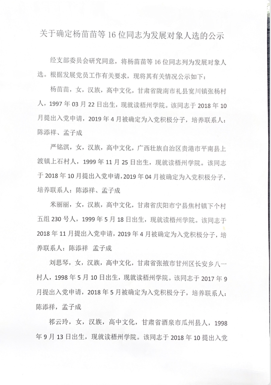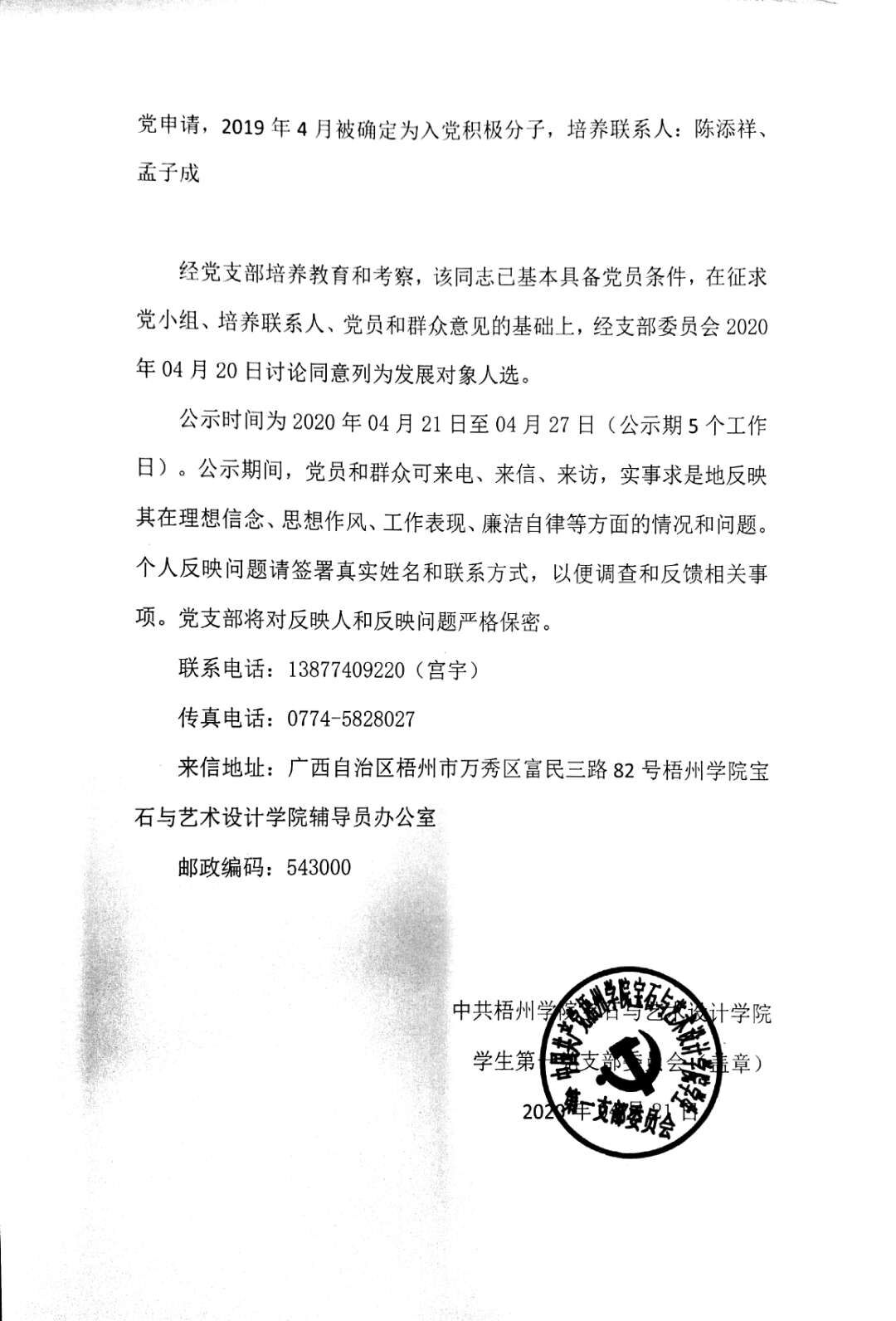 【来源:2020年发展对象公示名单 第一支部 | 发布日期:2020-04-21 】