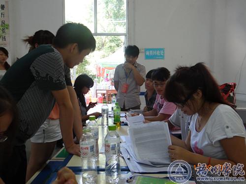 工作人员认真为新生办理注册手续