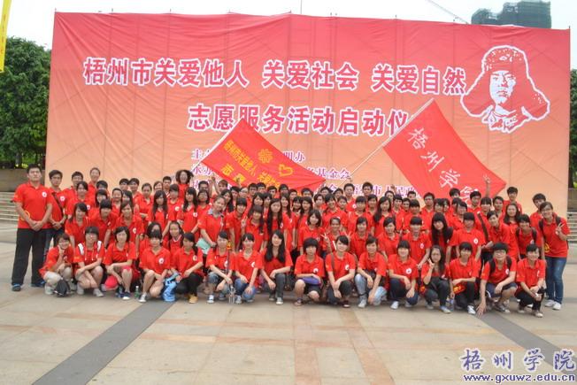 为大力普及奉献他人、提升自己的志愿服务理念,弘扬雷锋精神,推动学雷锋活动常态化,5月19日上午,梧州市关爱他人、关爱社会、关爱自然志愿服务活动在市政广场举行启动仪式,我院100名学生代表与来自社会各界的1200多名群众参加了启动仪式。