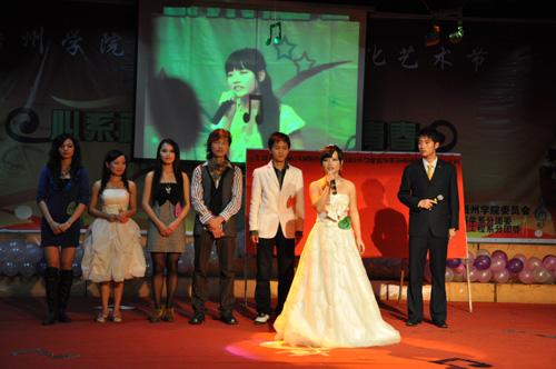 11月27日晚,梧州学院2012年校园文化艺术节“校园十佳歌手”总决赛在学院演播厅举行。学院党委委员、宣传部部长毛廷贵,学生工作(部)处长李远林,学院团委书记胡献林,学院团委副书记韩小平,电子信息工程系党总支副书记吴燕端,计算机科学系副主任代丽娴,院团委办公室主任李玲,梧州职业技术学院团委副书记庞礴以及各系分团委书记等观看总决赛。