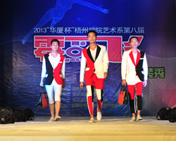 4月17日晚上8点,我系第八届“零点起飞”时装秀—2013届服装设计专业优秀作品展在学校体育馆一楼闪亮登场。学校党委书记唐耀华、副校长程道品、车家芹,财务处处长陈剑、艺术系主任杨杰、成人教育学院院长毛廷贵、党委办公室副主任陈远武,艺术系党总支副书记甘阳、副主任骆宗勤及我系服装教研室全体师生观看了表演,此外广东华夏劳务派遣公司的代表也到场观看,梧州电视台,梧州日报、梧州电台等多家媒体和部分梧州市摄影爱好者应邀前来采访报道。此次时装秀由艺术系主办,服装教研室、分团委学生会承办。