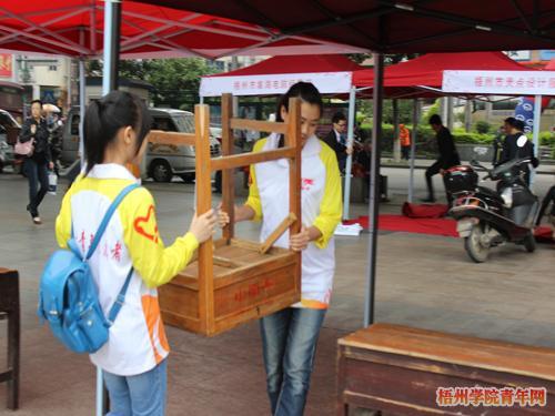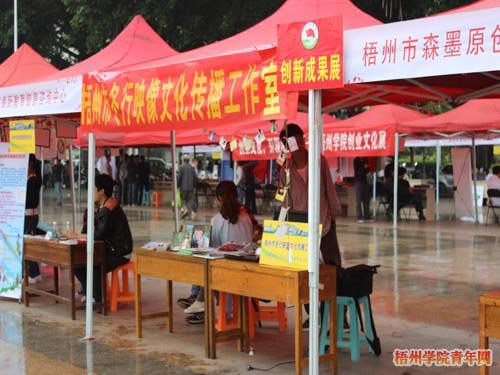 5月3日上午,我院组织43名青年志愿者到梧州市丽港广场协助开展由共青团梧州学院委员会主办的肇梧大学生创业创新成果展活动。风采展总共分为三个展区,我院青年志愿者主要参与了会场布置、会场秩序维护和礼仪引导等工作。活动刚开始,志愿者们在负责人统一的安排下,立即就投入到会场布置的工作中。虽然天空下起了蒙蒙细雨,但是志愿者们依然坚守着自己的工作岗位,直到活动结束,充分保障了整个活动正常有序的进行。