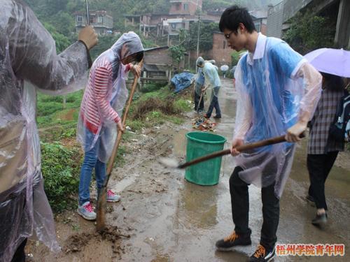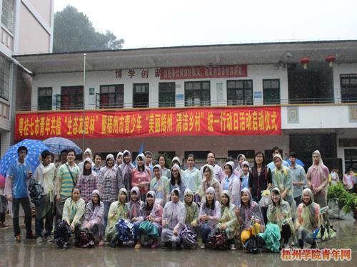 活动开始,梧州市青年志愿者代表发表了讲话,他表示此次活动的开展主要是为了加强环境保护,塑造清洁乡村,促进粤桂七市的合作与交流,全面建设小康社会。接着开展的是清洁乡村活动。阴冷的雨天没有磨消大家劳动的激情,反而让大家觉得这次清洁活动更具挑战性了,大家分工合作对指定位置进行了垃圾清理,在领导们的带领下,路面达到了要求的清洁效果。最后,活动在《光荣啊!中国共青团》的歌声中结束,至此,纪念“五四”运动94周年主题系列活动的前两项圆满成功。