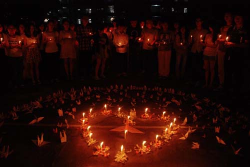 暮春四月,西蜀大地,突闻噩耗,全国悲怮。4月23日晚,艺术系西区师生自发组织一场为四川灾区受灾同胞祈福会。