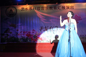 4月19日晚,,我校艺术系2011级音乐教育班“我们的梦”专业汇报演出在北区报告厅成功举行。本次活动由艺术系主办,音乐教研室承办。学校副校长玉振明,学校党委宣传部部长李远林,艺术系主任杨杰,艺术系副主任骆宗勤以及社会各界的嘉宾观看了晚会。