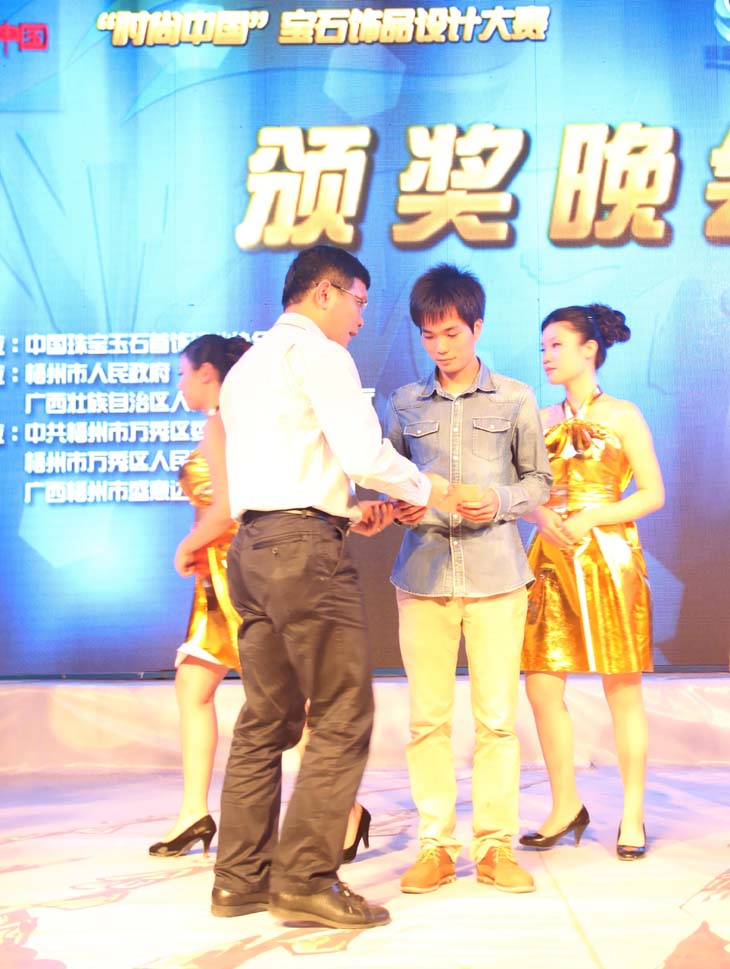 10月30日晚,“时尚节拍,动感之夜”第十届梧州国际宝石节“时尚中国”宝石饰品设计大赛颁奖晚会在梧州市鸳江丽港中心广场隆重举行。市人大常委会副主任孔祥鹏、市政府副市长彭健铭、市政协副主席陈澄波等领导出席颁奖晚会并为获奖者颁奖。