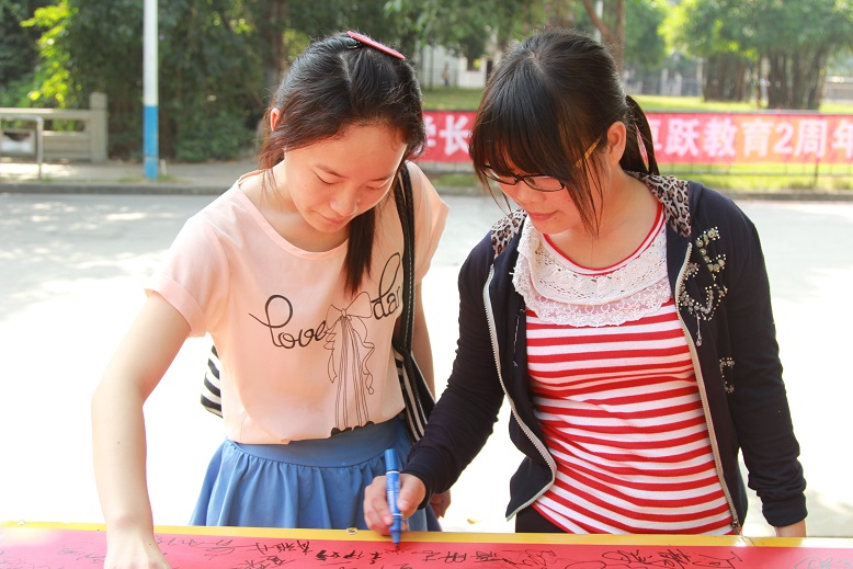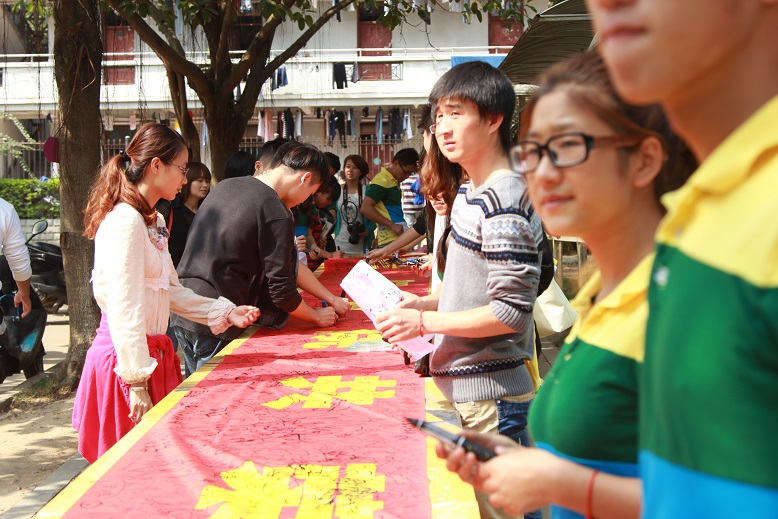 活动现场吸引了众多同学驻足观看,许多同学与老师纷纷下笔,在“我与梧院共荣辱”的横幅上郑重地签上自己的名字,宣示着同学们与过去的自己的陋习决裂,将学校的荣辱与自己的言行紧紧地联系在一起。