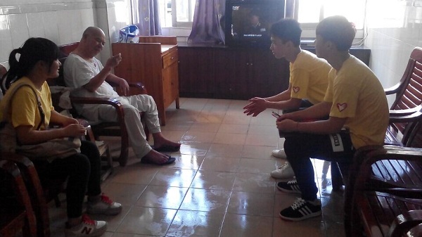 所有老人中让志愿者们印象最深刻的是三楼的一个老爷爷,他以前是一名抗战老兵、部队的班长,也是一名人民教师。今年75岁,因得了风湿病生活不能自理,儿女工作忙就把他送进了福利院。当他说起他以前和战友去越南打仗的事,眼泪一直在眼眶打转。当志愿者问起战争后有没有再见过自己的战友,他摇摇头说:“解放后就再也没见过,也不知道他们过得好不好。”这一句话触动了在场的所有志愿者。
