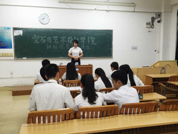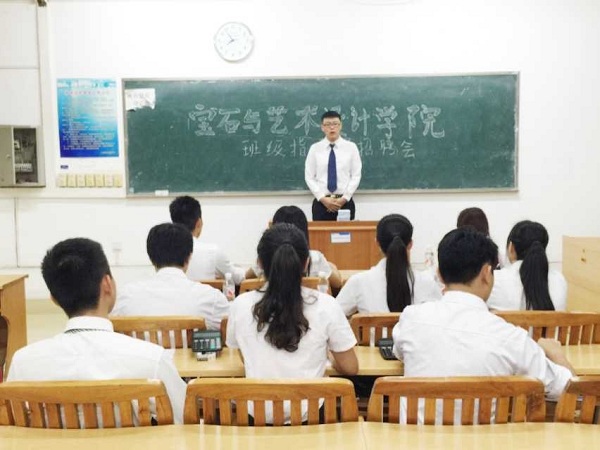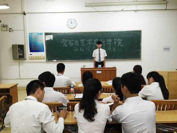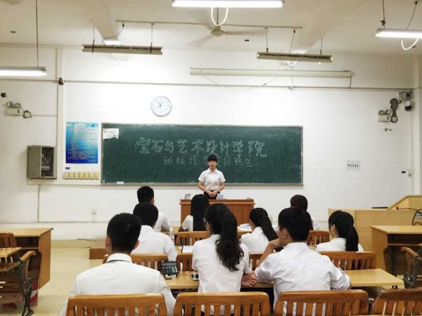 2015年7月10日晚上19:30,宝石与艺术设计学院在明理楼南楼304进行2015级班导招聘会。我院13级学生干部侯秀婷 韦素花 王建南 罗柳 徐健 王俞6人担任评委。 面试中,选手们按照顺序进行自我介绍,阐述了参选理由以及当选后的做法,参赛选手储育画说:“大一新生刚进入大学都比较迷茫,面对一个新的环境避免不了一种抵触,一种对家的想念,所以作为他们的学长的我想融入到他们的生活中去,了解他们的心里真实的想法,指引他们了解新生活,这样可以带他们较快的适应大学生活。”另一位参赛选手昌婷婷这样说道:“我希望自己可以像大姐姐一样,可以帮助学弟学妹们在学习中、生活中的遇到的困难,解决问题,团结班级。我毕竟是刚从大一过来,所以我深知学弟学妹们刚入大一时所遇到一些生活方面还有学习方面的一些问题,我认为我可以帮助他们更好的解决。这些问题。更好的迎接新的环境,新的生活!”同样评委们也对参赛选手提出的各种问题。评委罗柳学姐问刘景峰,“你认为作为一个班导最重要的一点是什么?”刘景峰回答说:“我认为作为一个班导最重要的是能够管理好班级,帮助班干,指导班级同学,协助好老师,及时与老师交流,同时做到与同学交流,为老师服务的目的。”本次选举选手都各自展现了自己最好的风采,同时选举竞争也很激烈。