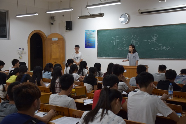 在习近平主席号召推进社会主义核心价值观建设,弘扬中华传统文化和传统美德的大背景下,2015年9月17日晚上,宝石与艺术学院2015级新生在明理楼举行本学期的第一次班会。班会按照不同专业在不同的教室开展,2015级新生班级指导员分别主持了各班班级会议。