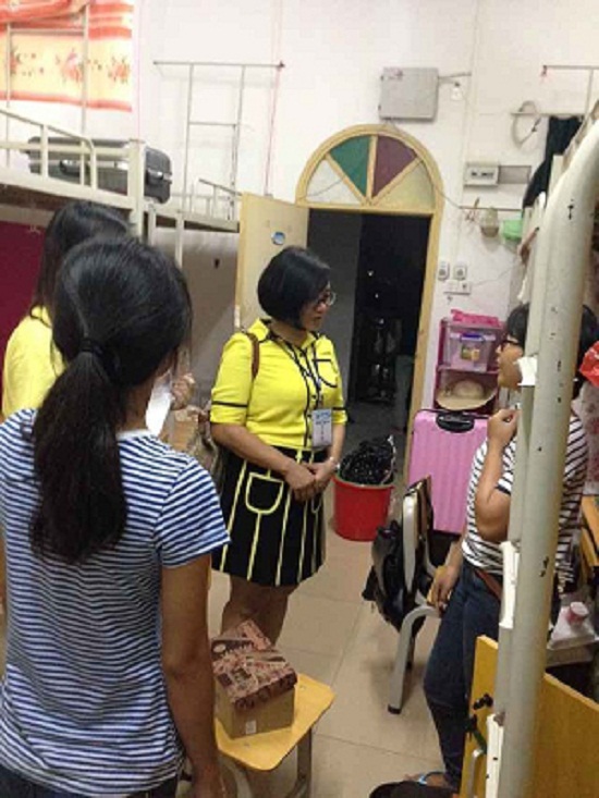 9月16日晚上,我院院长杨杰、党委书记钟海明,党委副书记王珍、副院长罗小燕、唐哲、学院团委书记兼15级新生辅导员张亚敏老师,在学生干部的陪同下到A1、A3、A7、A9、A11等宿舍进行走访慰问,并对已入住的新生表示热烈的欢迎和亲切的问候,并同新生进行了深刻的交谈。