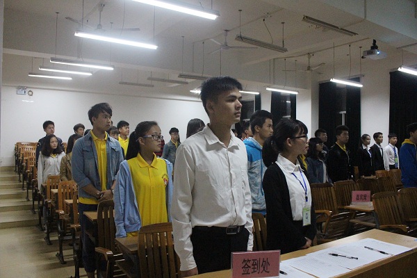 首先,参会人员集体起立奏国歌及志愿者之歌。随后张亚敏老师、汪淑玲同学分别发表了讲话。张亚敏书记回顾从2010年至今来到宝艺学院任职以来和青协一起相处的点点滴滴;同时也感谢青年志愿者们的无私奉献,让大家懂得感恩每个帮助过我们的人。最后还强调了外出做志愿者活动时的安全问题。接着由现任副会长(代理会长)谢蕊代表干部发言,以及综合部副部长代表做2014-2015年的工作总结;并观看了2014-2015年开展的活动视频。最后在各干部与新干事交流的欢笑声中圆满结束。