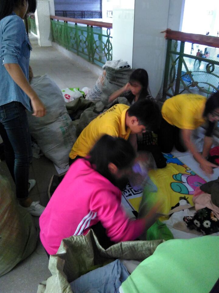 我院的青协分会积极配合了这次回收旧衣物活动,安排好各时间段值班志愿者。在为期3天的捐赠活动中,得到了同学们的大力支持,收到了各类不同御寒衣物。志愿者们分工合作把回收的旧衣物进行分类打包。