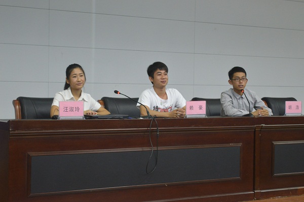 首先由校学生会主席赖豪向我院2015级的新生们分享了他的大学经历,并告诉新生们什么是责任,什么是担当。强调树立坚定的目标并一直坚持下去。接着,学院团委副书记汪淑玲讲述了大学四年与人相处和社会实践的重要性。然后我院学生会主席胡浩也分享了自己在生活上、学习上的心得体会,强调要对大学“不辜负”,不忘初心,方得始终。