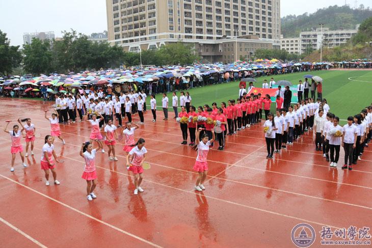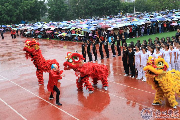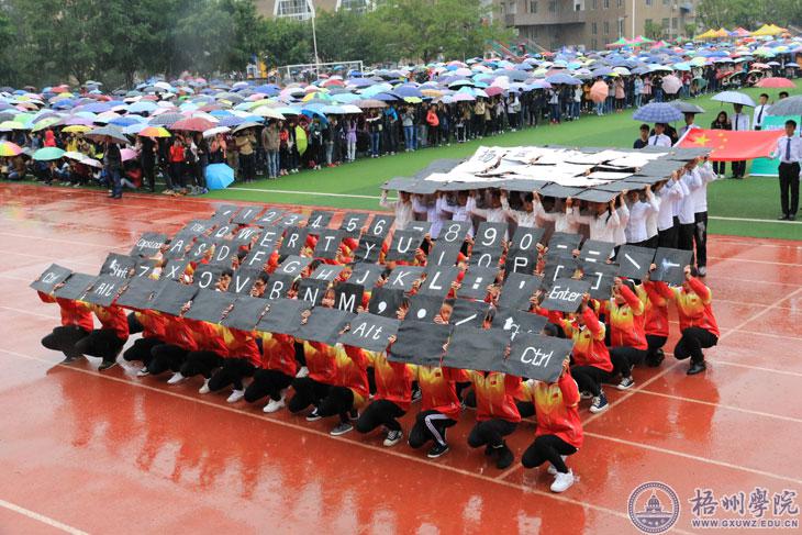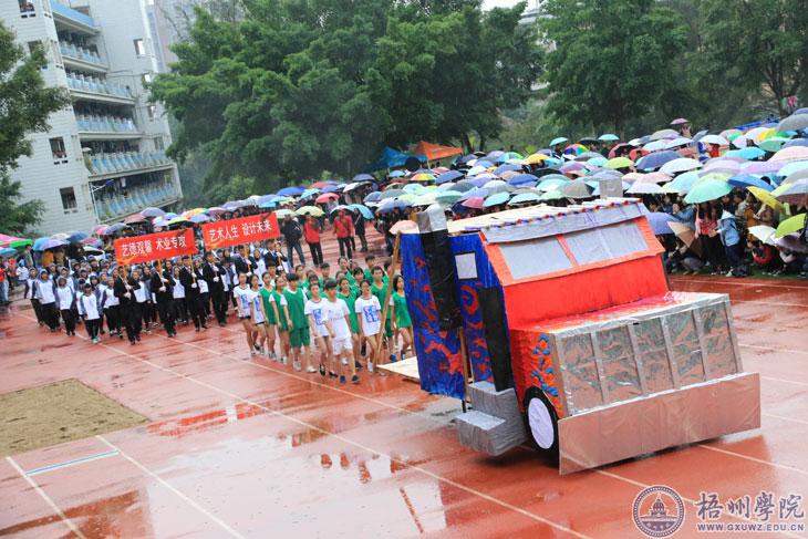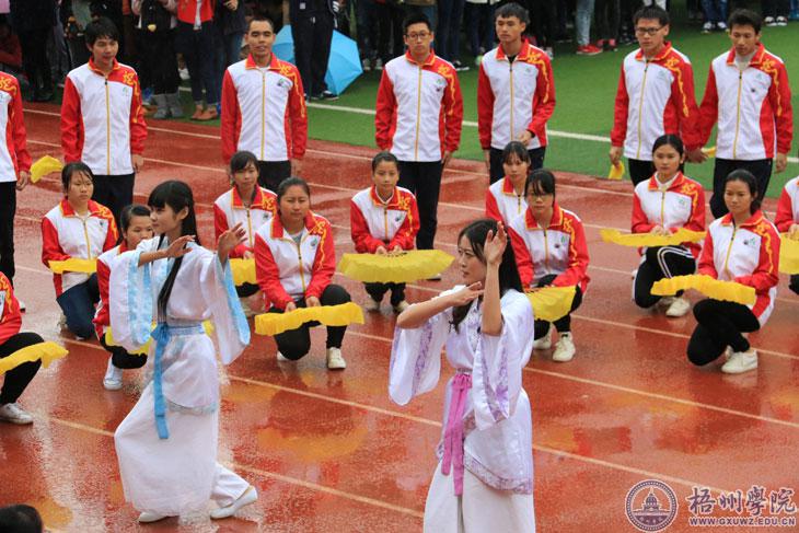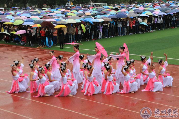 音乐响起,在橙红色的跑道上,大家“盛装出席”。没有灯光,伴着丝丝细雨,主席台前100米的距离,就是本次校运会表演队的“秀场”。12月3日上午,在我校第二十六届运动会的开幕上,各二级学院各尽其才,化跑道为“秀场”,进行了一场“才艺大比拼”。
