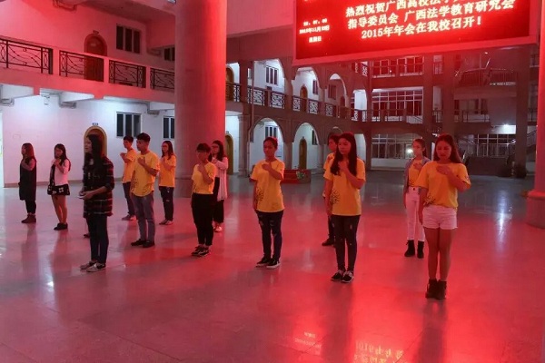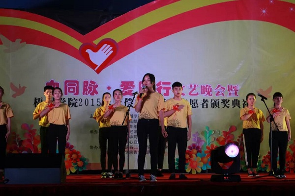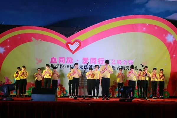 春回大地,爱暖人间。11月24日晚19:30由梧州市公民献血委员会、共青团梧州学院经济管理学院委员会主办,各二级学院青年志愿者分会协办的“血同脉,爱同行”文艺晚会暨模范志愿者颁奖仪式正式开始。各院青协分会都准备了精彩的节目,我院青协为了响应此次晚会主题,特意准备了《感恩的心》手语节目。
