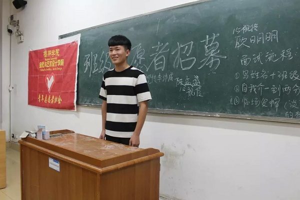 在招募活动中每一位青协学生干部都认真负责。在参选同学自我介绍后,并提出适宜的问题来考察他们对待问题的应变能力以及对志愿者的了解。在面对学生干部的提问,参选的同学们有些自信从容地回答了每一个问题,有些同学略显紧张。有许多之前来参加青协干事招新落选的同学表示对志愿者有一份深厚的感情。虽然在之前的青协面试中落选,但是那份感情和激情依然在,现在又有了班级志愿者的招募就毫不犹豫地来报名参加了,不想让自己留下遗憾。