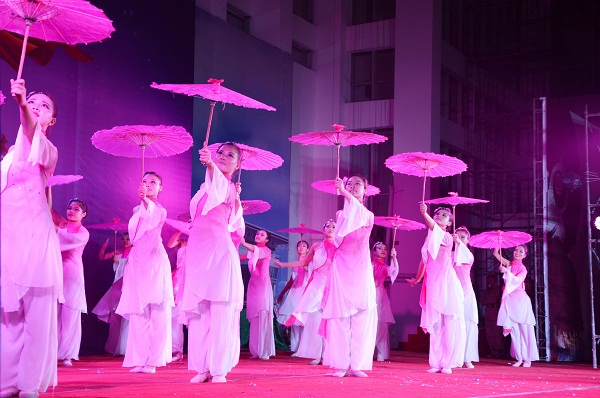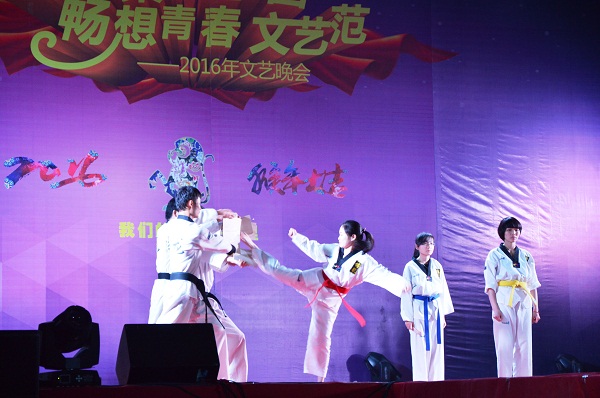 晚会形式多样,内容丰富。如潺潺流水般的歌声配上充满民国韵味的舞蹈,一首《青花瓷》将观众们带回了民国时期,一折纸扇在演员们手中挥舞,“文艺范”十足。独特的《手电舞》表演,运用光束在幕布上设计出一个个图案,时钟、帆船、眼睛……展现文法人携手并进的难忘时刻,深情的话语道出了文法人的心声:相聚即是缘分。小品《一路惊喜》,金毛狮王谢狲、东方不败、武大郎、哪吒一一亮相,上演一场场令人啼笑皆非的“英雄救美”,幽默诙谐的表演让观众们笑声不断。《Youner Genration》拉拉队的热舞,球员们大秀球技,证明他们不仅是只会读书的一代,还是会舞动的一代,彰显青春风采。《静静地想你》用深情的朗诵,营造了一种古典悠静的氛围,动人心弦,让人感动情意绵绵。歌曲《月光》悠扬的歌声真如月光洒在身上让人如梦如幻,沉醉其中,观众们纷纷拿起手机,打开闪光灯,随着节奏一起摇摆,现场变成了一片灯海。跆拳道协会带来的《道出风采》更是将晚会推进高潮,不管是三连踢、五连踢,还是手砸大理石都让现场观众尖叫连连,每一次鞠躬都体现出跆拳道精神。还有话剧《机场奇遇记》、走秀加情景的《魅力之夜》、舞蹈加学堂的《桃夭》的精彩表演。最后晚会在《相亲相爱》的歌曲中圆满结束。