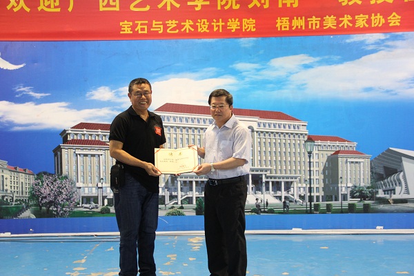 (梧州学院报 黄燕燕)由宝石与艺术设计学院、梧州市美术家协会联合主办的广西艺术学院刘南一教授油画人物写生示范及“美术创造表现能力的培养研究”学术讲座分别于4月27日上下午,在我校大学生综合发展中心启迪展览区举行。出席活动的领导和嘉宾有我校校长杨奔,梧州市美术家协会名誉主席李灵机,梧州市文联副主席张亮,梧州市书法家协会主席郑伟标,梧州市美术家协会何志强、劳康平、李煜荣、关智广等副主席,宝石与艺术设计学院院长杨杰、副院长唐哲等领导,梧州市美术家协会理事与会员、宝石与艺术设计学院师生代表参加了活动。
