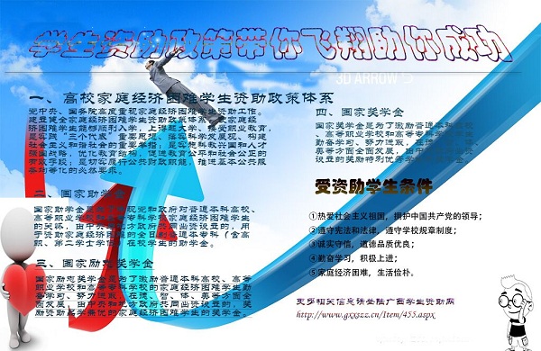 为进一步加大学生资助政策宣传力度,提升学生资助政策宣传效果,我校近期结合2016年全区“学生资助政策宣传月”活动开展以资助政策为主题的电子板报比赛活动,本次活动由学生工作处主办,宝石与艺术设计学院团委学生会承办。