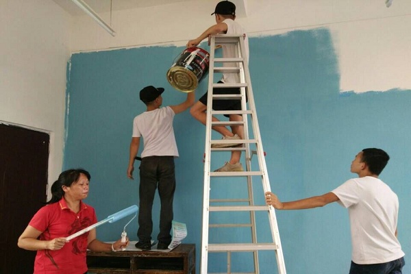 下午,志愿者们来到双桥小学。与校长沟通好后,准备精心装修,开始粉刷墙绘第一步。校长也怀着激动的心情参与进来,充分表达了对志愿者们的感谢和肯定我院志愿者们的爱心奉献工作。