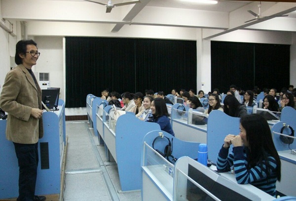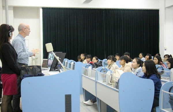 11月9日晚,由宝石与艺术设计学院院长杨杰主持的英国普利斯艺术学院专题讲座在我校实验楼二楼语音室五召开,参加讲座的嘉宾有:英国普利茅斯艺术学院本科教育处副主任恩• 法伦、教务主任史蒂夫•特罗特、国际项目负责人梁鸿亮,及宝石与艺术设计学院设计类专业的学生,和相关外语专业的学生。