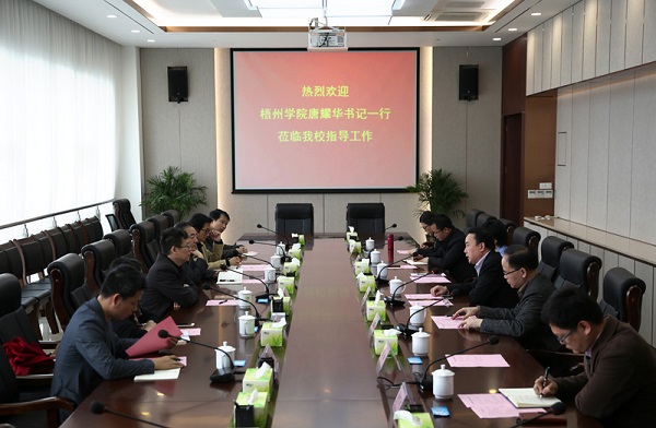 为做好我校艺术设计硕士学位授予单位立项建设的相关工作,与有丰富硕士点建设经验的区内兄弟院校更广泛地学习与交流,3月27日,学校党委书记唐耀华率队到广西艺术学院考察学习。教务处处长戴继明、科研处处长陈剑、宝石与艺术设计学院院长杨杰及相关专业教师等人员一同前往。
