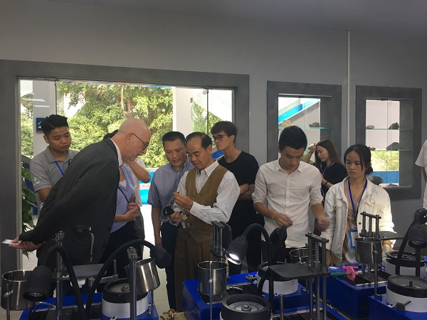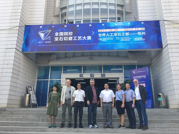 10月27日下午14:40,瑞典本茨福什市代表团一行到我校参观访问。出席的主要成员有:瑞典本茨弗什市市长,代表团团长:佩尔·埃里克松;瑞典本茨弗什市社会福利委员会主任:卡尔·克尔格连;瑞典本茨弗什市社会福利局局长:列娜·牧斯拜里;瑞典斯坦尼伯大学首饰艺术系讲师:社尔仁·海克维斯特 ;瑞典本茨弗什市瑞中发展合作项目办主任:何勤彪。我校国际交流处处长、国际交流学院院长刘卫东,我院宝石与艺术设计学院院长杨杰在明理楼前迎接客人,并带领他们参观了全国院校宝石切磨工艺大赛现场和珠宝实验室。