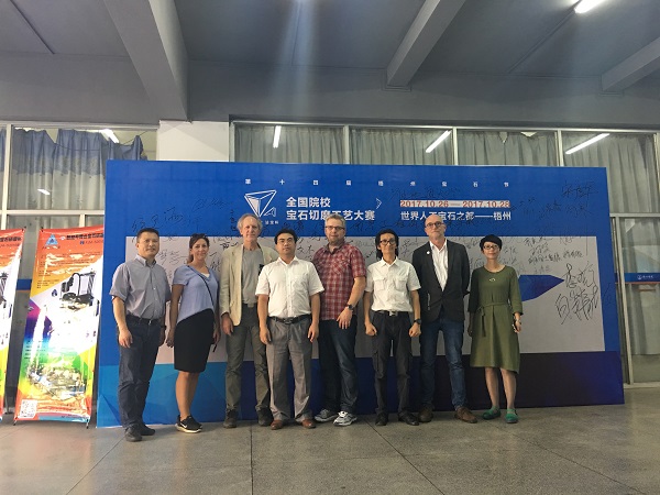 学生现场示范演练宝石的切磨工艺,双方就宝石的切割、数控升降台的功能和未来发展进行了详细的交流。我院杨杰院长表示,希望代表团的各位嘉宾能够给予我们学术上的指导,我们会用心完善,给学生带来知识,给学校带来光荣。交流结束后,双方合影留念并继续参观我校人工宝石设计与加工实验室。