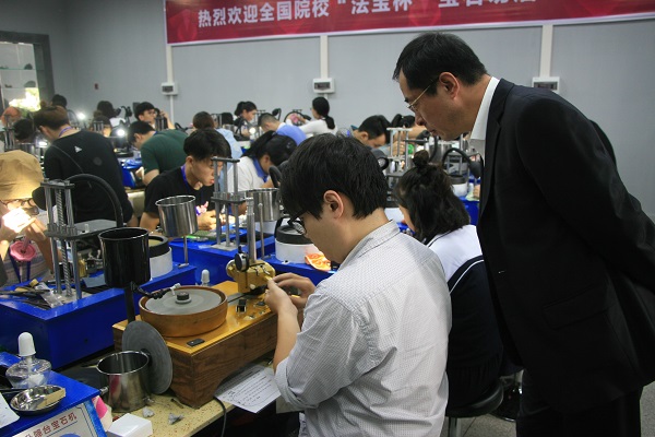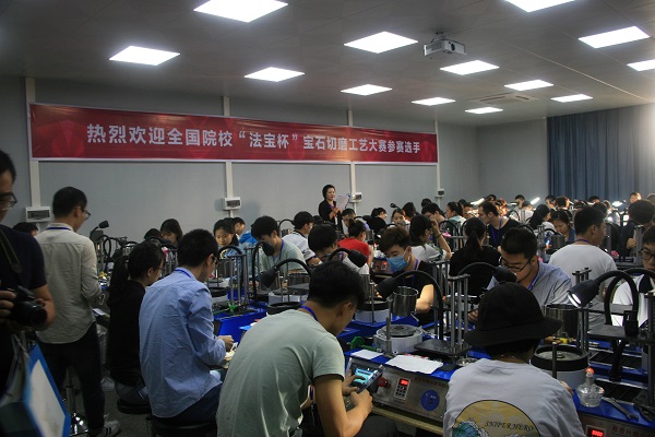2017年10月27日上午8:00,由中国珠宝玉石首饰行业协会主办,中宝协学术教育专业委员会梧州学院承办的2017全国院校“法宝杯”首届宝石切磨工艺大赛在梧州学院实验大楼二楼宝石加工技能培训中心正式开始比赛。