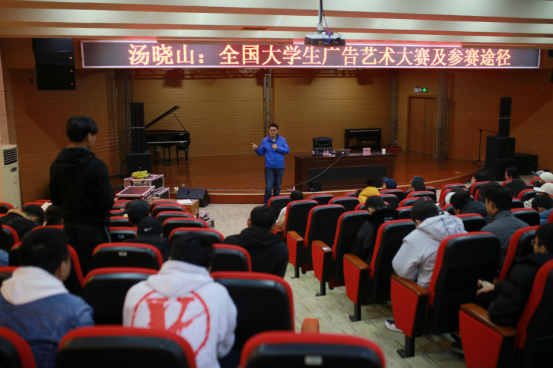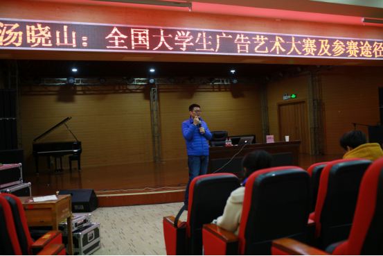 12月30日15时,汤晓山教授学术交流活动--全国大学生广告艺术大赛及参赛途径活动,实验楼五楼音乐厅顺利召开。出席本次活动的嘉宾有:广西艺术学院影视与传媒学院党委书记、副院长、教授、博士生导师汤晓山,宝石与艺术设计学院院长戴继明,副院长吴海彪、贠禄,梧州市美术家协会主席杨杰、副主席覃丹颖及视觉传达设计全体师生在实验楼五楼召开会议讲座,梧州市美术家协会主席杨杰担任本次活动的主持人。