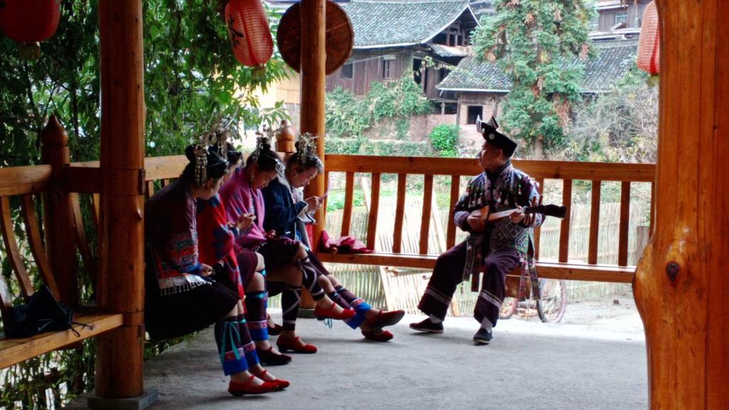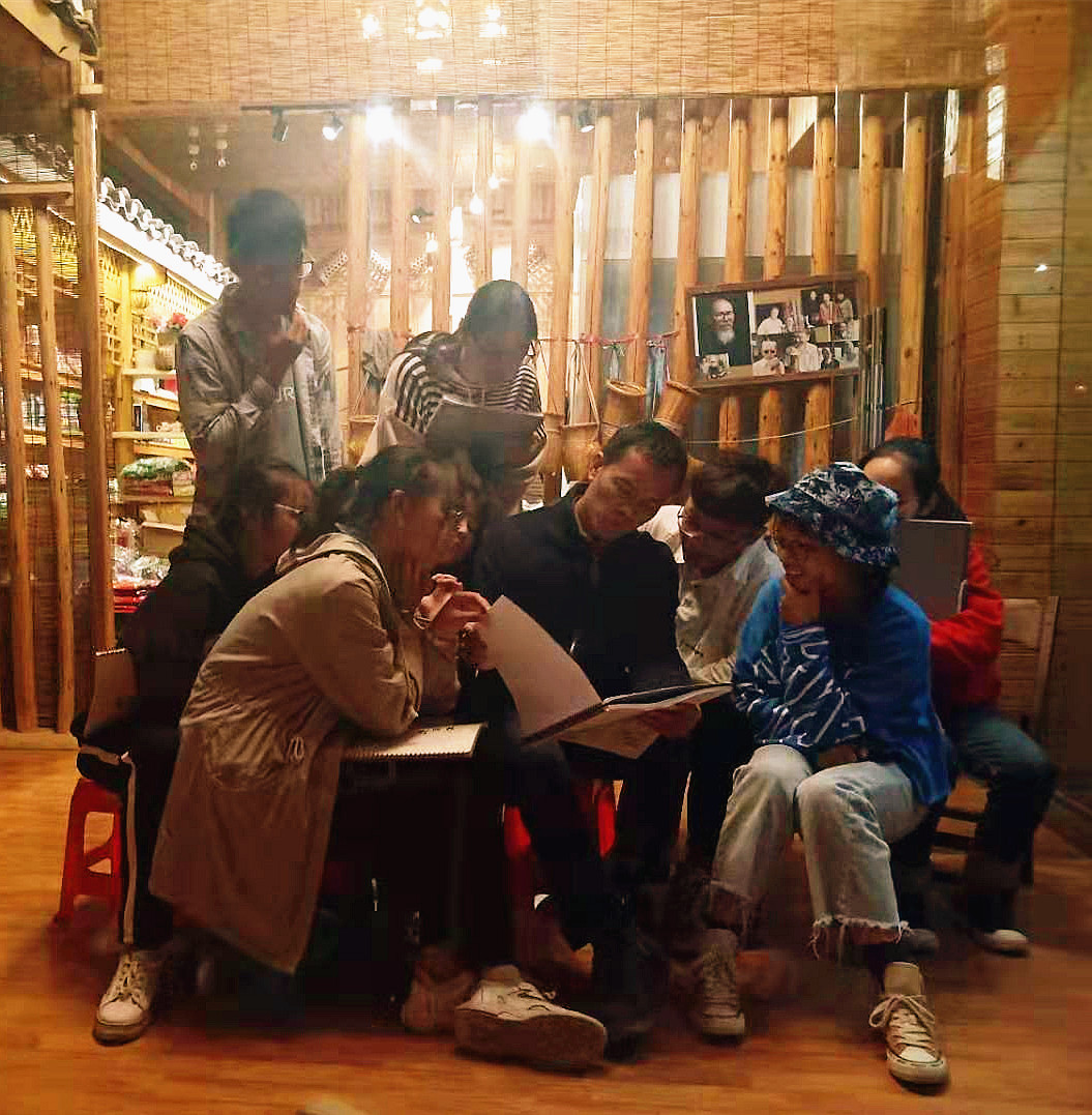 两周的时间里,考察团分班、分组紧锣密鼓地展开了研学和考察。各专业的师生队伍到东寨、平甫、吉昌、大寨、马安、平寨、岩寨、平坦等进行针对性的调研收集、考察分析。产品设计专业(珠宝首饰设计方的)的学生们在容一力、徐亚兰老师的指导下分组、分阶段进行对侗族独特的针织配饰和金银首饰、自然花卉虫鱼、风景建筑等多样化素材元素进行提取、收集描绘,最后进行创意首饰设计,循序渐进地扩展学生的知识面和培养创新能力。服装与服饰设计专业的同学在李升安、容绍鹏老师的安排下针对侗族的少数民族服装服饰进行素材收集,对侗布制作过程调研,进行侗族人物写生课程,课程形式丰富多样。汤桂芳、黎炳锋则指导视传设计专业的同学们收集各种侗族特色素材进行手绘,着重对画面内容效果、线条色调的张力表现进行训练,提高了学生的创新创意设计技能能力。吴薇和姜丽老师给环境艺术设计的同学们解说三江程阳八寨的风雨桥、鼓楼等特色民寨、建筑的结构、构造,带领同学们参观当地的民俗博物馆,课堂知识内容丰富,让同学们受益匪浅。最后数字媒体设计专业的同学们分组在陈文、马志来老师的指导下,对程阳八寨的侗族风土人情进行拍摄,记录侗乡人每一天的平凡生活中的不平凡时刻。