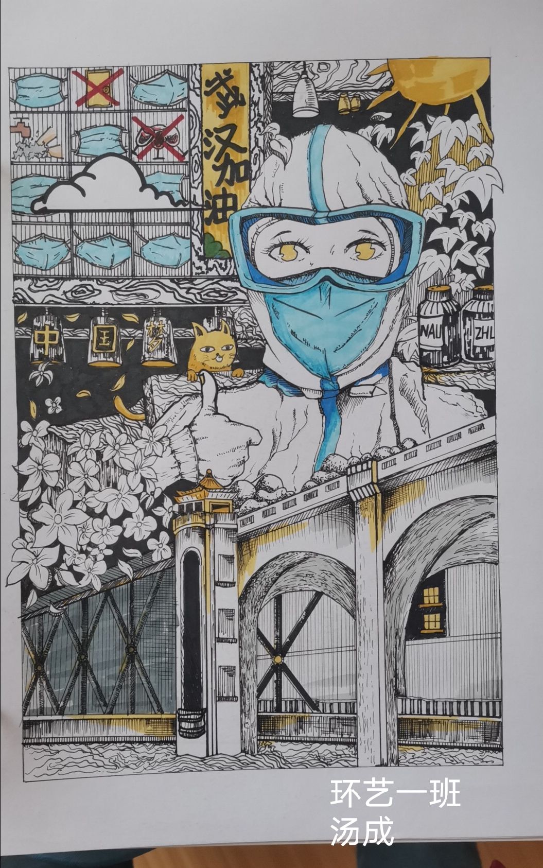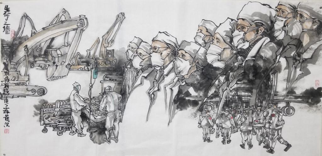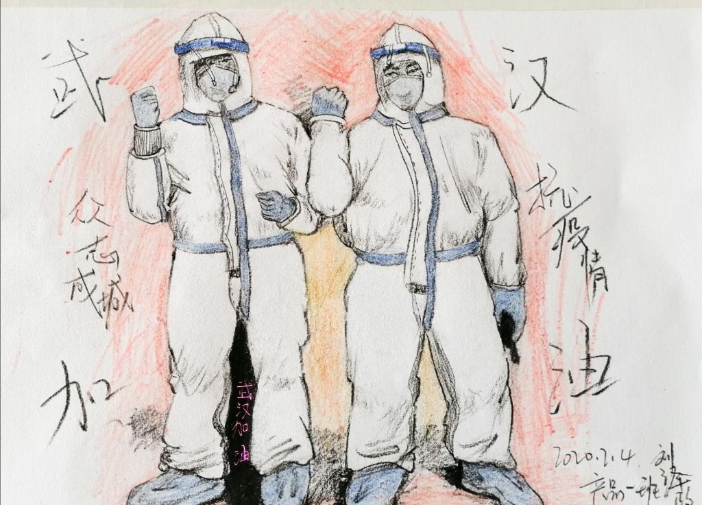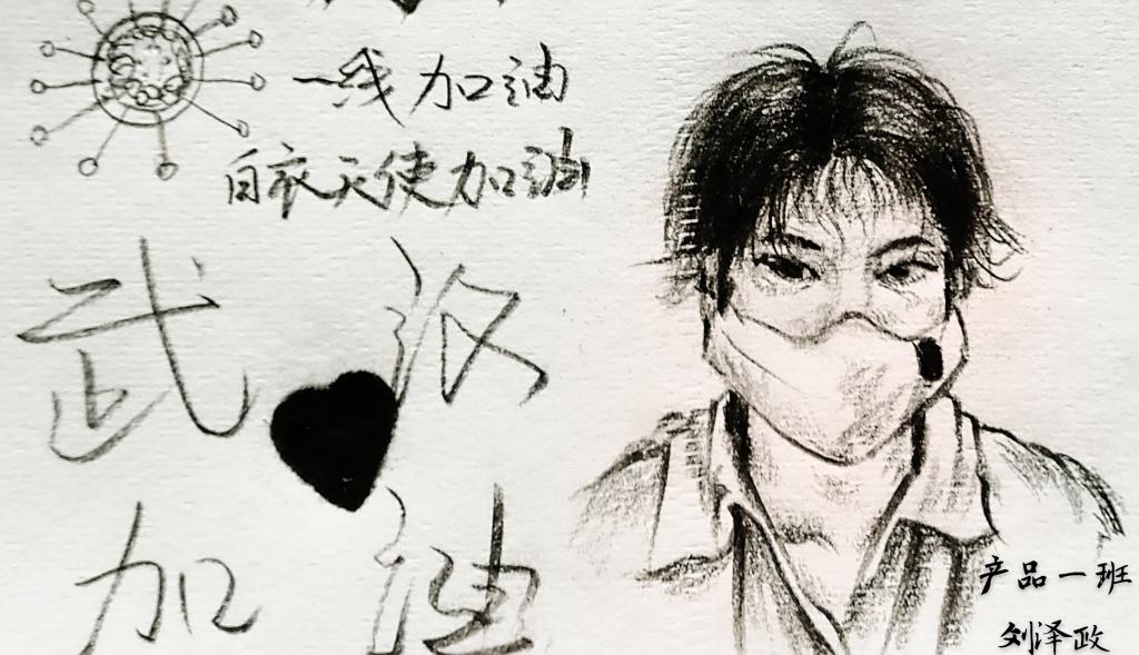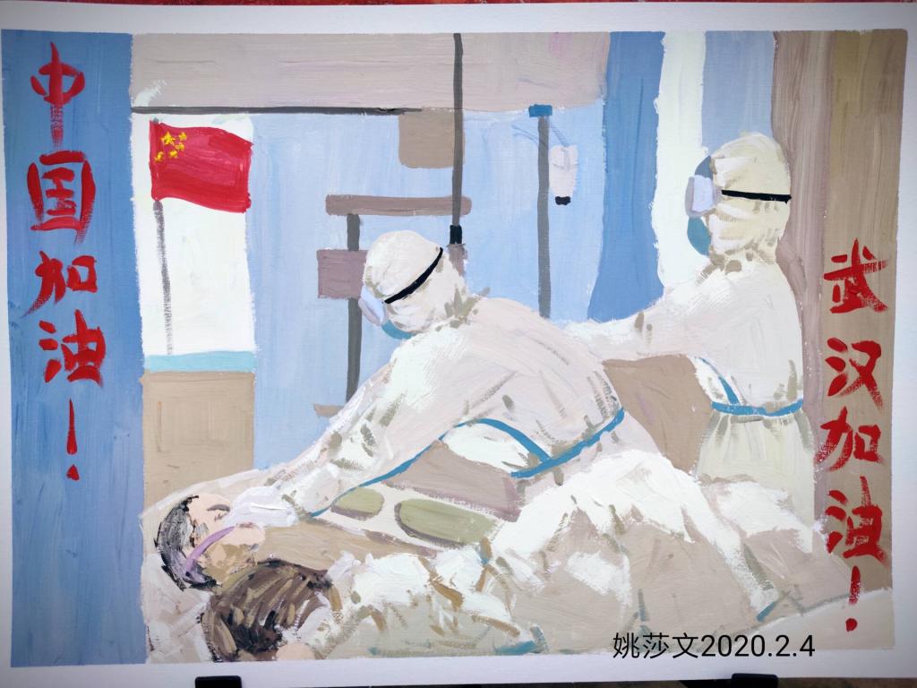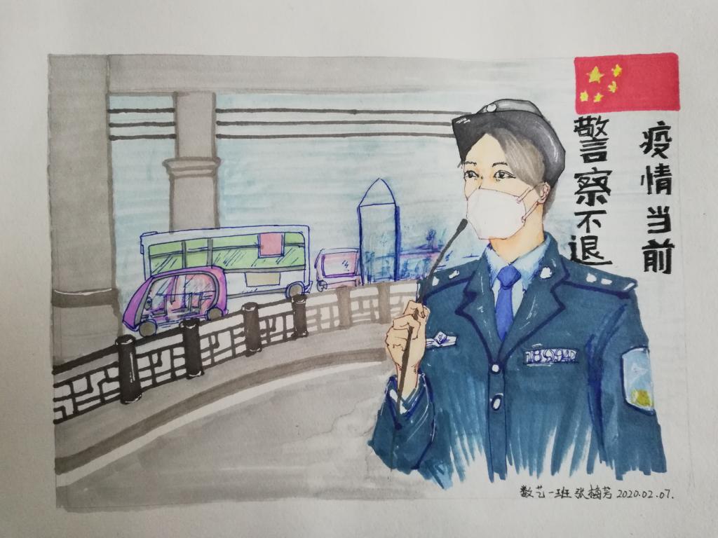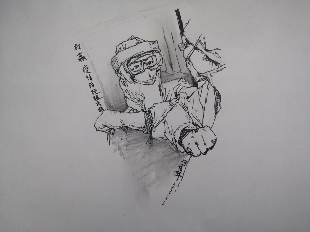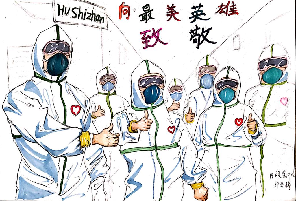 梧院教师黄尔为最美的逆行者作画!