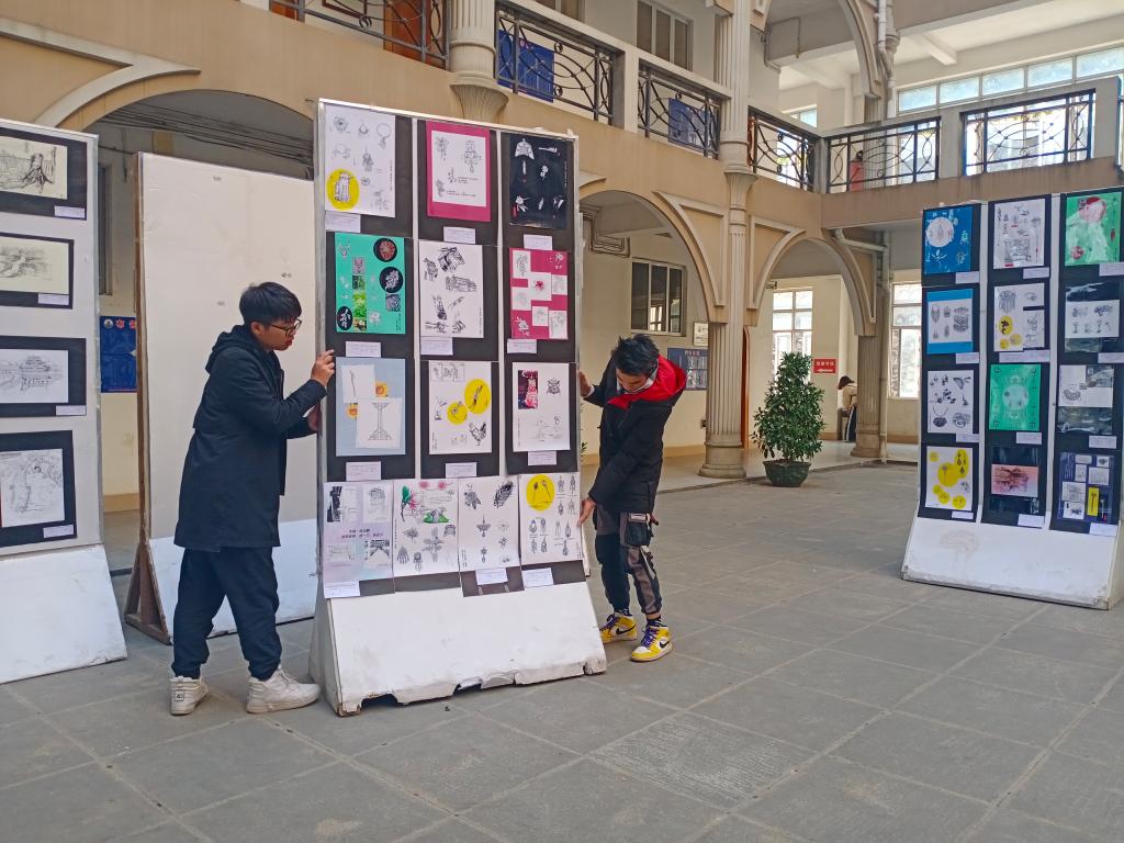 2019年12月13至14日,我校宝石与艺术设计学院19级设计专业全体学生在梧州学院明理楼2楼中庭举办了程阳八寨采风作品汇报展。