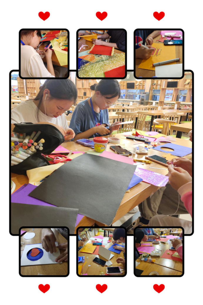 同学们在教室制作贺卡